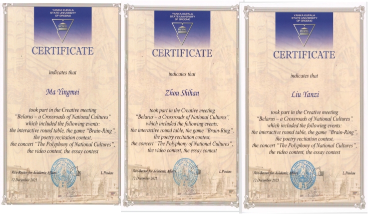 应我校友好合作院校——白俄罗斯格罗德诺扬卡·库帕拉国立大学邀请,我校遴选外国语学院马英梅、周诗涵、刘妍孜三名同学,参加了以“白俄罗斯——民族文化的十字路口”为主题的国际文化交流征文活动。